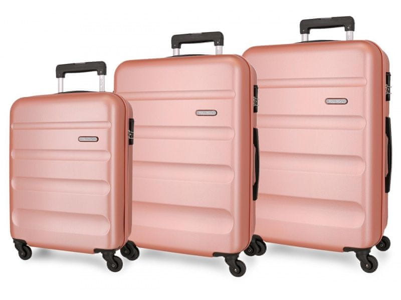 Komplet potovalnih kovčkov ROLL ROAD Flex Nude združuje nežno barvo z odlično vzdržljivostjo in praktičnimi funkcijami. V kompletu so trije kovčki različnih velikosti – mali (55×40×20 cm, 35L), srednji (65×46×23 cm, 56L) in veliki (75×52×28 cm, 91L). Kovčki so izdelani iz visokokakovostne plastike ABS in zagotavljajo odlično zaščito, poleg tega pa so enostavni za rokovanje. Štiri vrtljiva kolesca za 360° in sistem teleskopskega podaljška omogočajo enostavno premikanje in udobno potovanje. Vgrajena številčna ključavnica zagotavlja varnost vaših stvari.