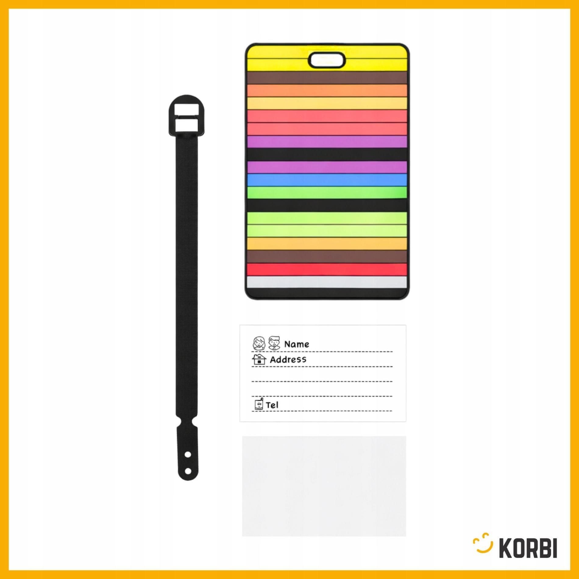 Praktičen komplet 4 naslovnih oznak za prtljago Korbi je nepogrešljiv pripomoček za vsako potovanje. Oznake omogočajo hitro in jasno označevanje kovčkov, torb ali nahrbtnikov, zato boste svojo prtljago lažje prepoznali na letališču, železniški ali avtobusni postaji. V primeru zamenjave ali izgube pa vpisani kontaktni podatki bistveno povečajo možnost hitre vrnitve. Vsaka oznaka ima prostor za vpis osebnih podatkov, ki je zaščiten s pokrovom, zato so informacije bolje zaščitene pred umazanijo in vlago. Pritrditev z elastičnim trakom zagotavlja stabilno namestitev na ročaj ali zanko prtljage tudi pri pogosti uporabi. Zaradi lahke, a trpežne plastične izvedbe so oznake primerne za počitnice, službena potovanja in družinske izlete. Komplet vsebuje 4 kose v mešanih barvah, kar omogoča, da označite več kosov prtljage hkrati ali jih razdelite med člane družine. Dimenzije: 6,5 × 10,5 cm Tehnične lastnosti: 4 kosi v kompletu, material plastika, barva večbarvno (mix), pritrditev elastični trak, stanje novo, EAN 5906448710233.