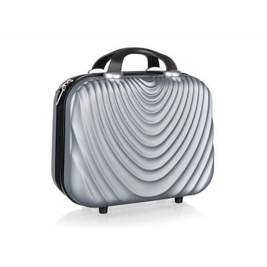 17-palčni potovalni kovček ABS07 v sivi barvi je izdelan iz visokokakovostne plastike ABS, ki je odporna proti udarcem. Kovček ima 2 plastična ročaja in zapiranje z zadrgo. Notranjost kovčka ima predelno steno iz blaga z zadrgo in manjši mrežast žep z zadrgo za boljšo organizacijo vaših stvari. Nosilnost potovalne prtljage je 8 kg. Dimenzije: 35 × 29 × 17 cm. Prostornina: 15 l. Teža 1,6 kg.