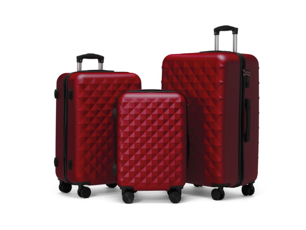 Rowex ROWEX Izjemno trpežen potovalni kovček s ključavnico TSA Crystal - komplet 3 kosov (barva bordo)