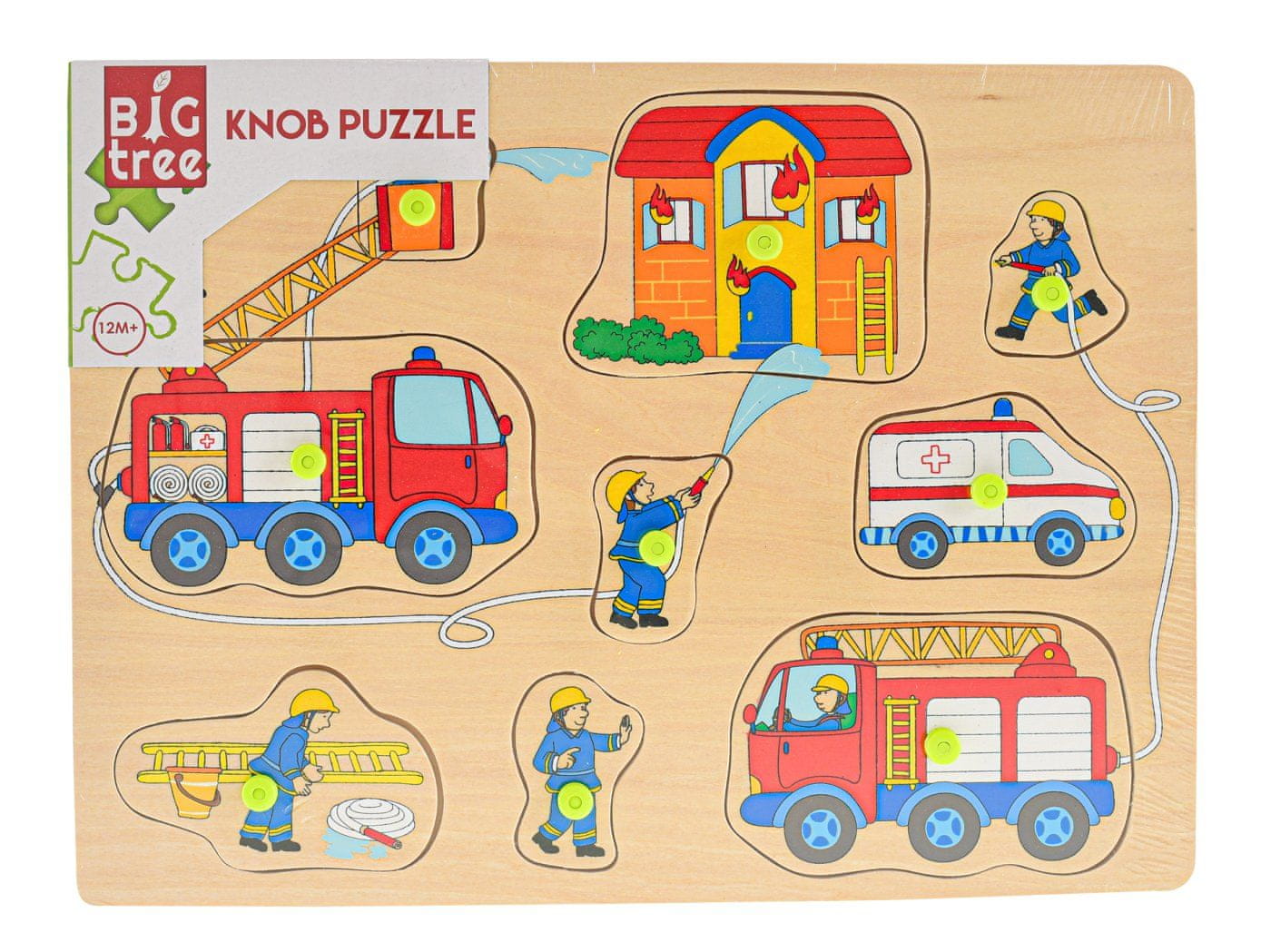 Drevesna sestavljanka z motivom reševalnih služb je primerna za otroke od 12. meseca dalje. Deli imajo ročaje za enostavno vstavljanje, tako da lahko otrok slike postavi tja, kamor spadajo.