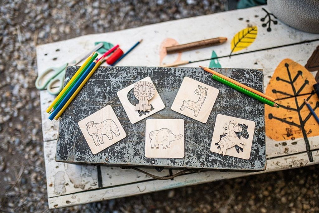 S tem edinstvenim kompletom z motivom divjih živali se bodo otroci zelo zabavali. Otroci ga lahko uporabijo kot sestavljanko ali puzzle, se igrajo z živalskimi liki in jih pobarvajo po svoji domišljiji. Ne glede na to, ali uporabijo barvice, flomastre, akvarel ali nalepke, je rezultat vedno izvirno umetniško delo, na katerega so lahko ponosni. Možnosti so neskončne! Ta leseni ustvarjalni set je idealen za razvijanje domišljije, fine motorike in umetniških spretnosti. Vsak kos izpolnjuje stroge varnostne standarde in ima certifikat CE, ki zagotavlja varnost in primernost za uporabo za otroke od tretjega leta starosti naprej. Glavne značilnosti: izdelan iz brezovega lesarazvija fino motoriko, ustvarjalnost in umetniške spretnostizagotavlja stroge varnostne standardecertifikat CE