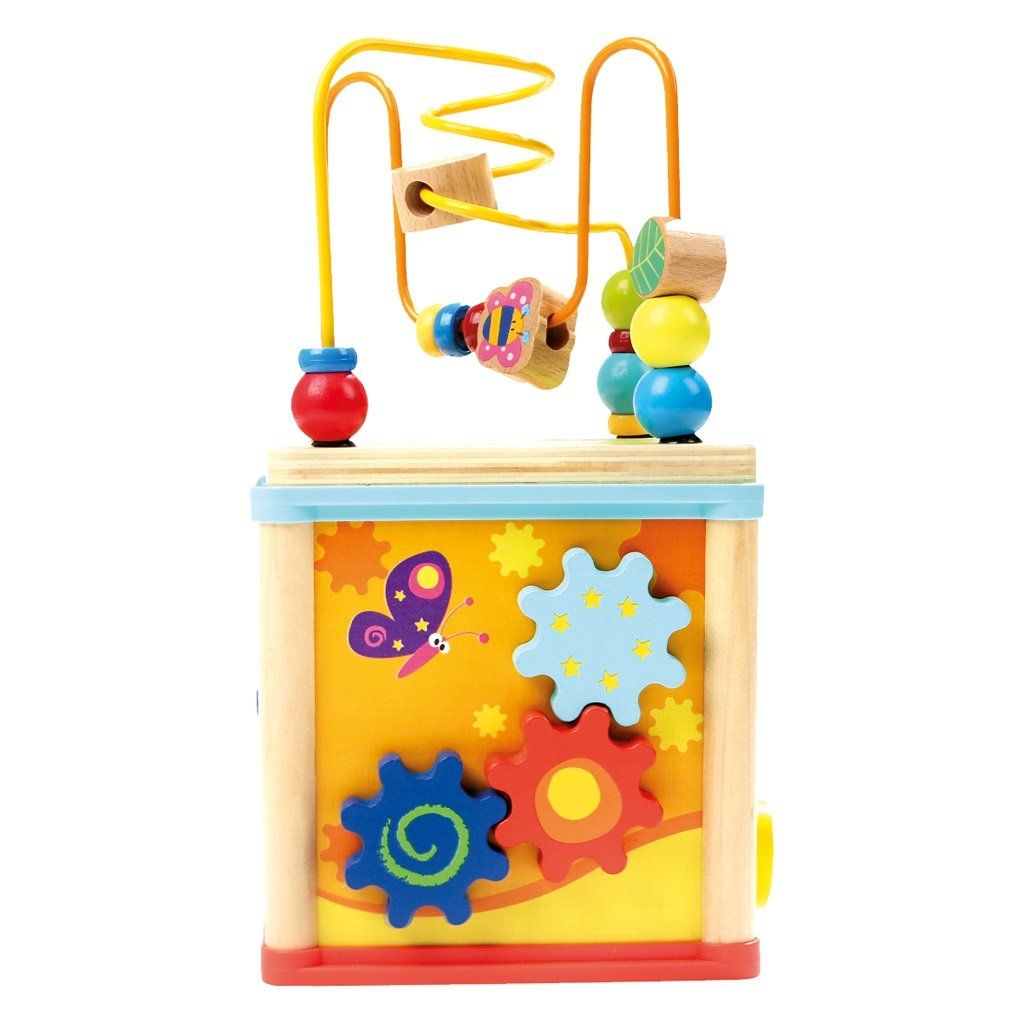Ta kocka z motorno uro ponuja raznolikost in zabavo pri igranju. Na stenah te kocke lahko otroci razvijajo vizualno zaznavanje, motorične sposobnosti in logiko. Zaradi premišljene zasnove igrače in njene večnamenskosti se bodo otroci naučili prepoznavati osnovne oblike in barve.