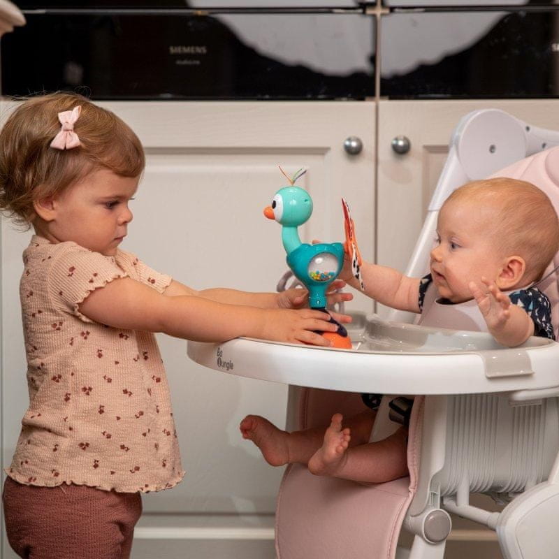 Plastična igrača s priseskom, ki se pritrdi na jedilno mizo in otroku preprečuje, da bi jo vrgel na tla. Celoten opis