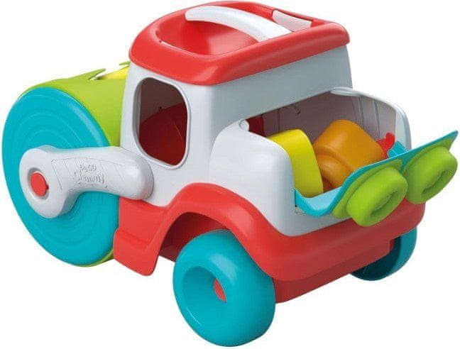 Zabavno senzorično vozilo z valjem, ki „žre“ kocke, v izvirnem dizajnu Clemmy baby. Celoten opis