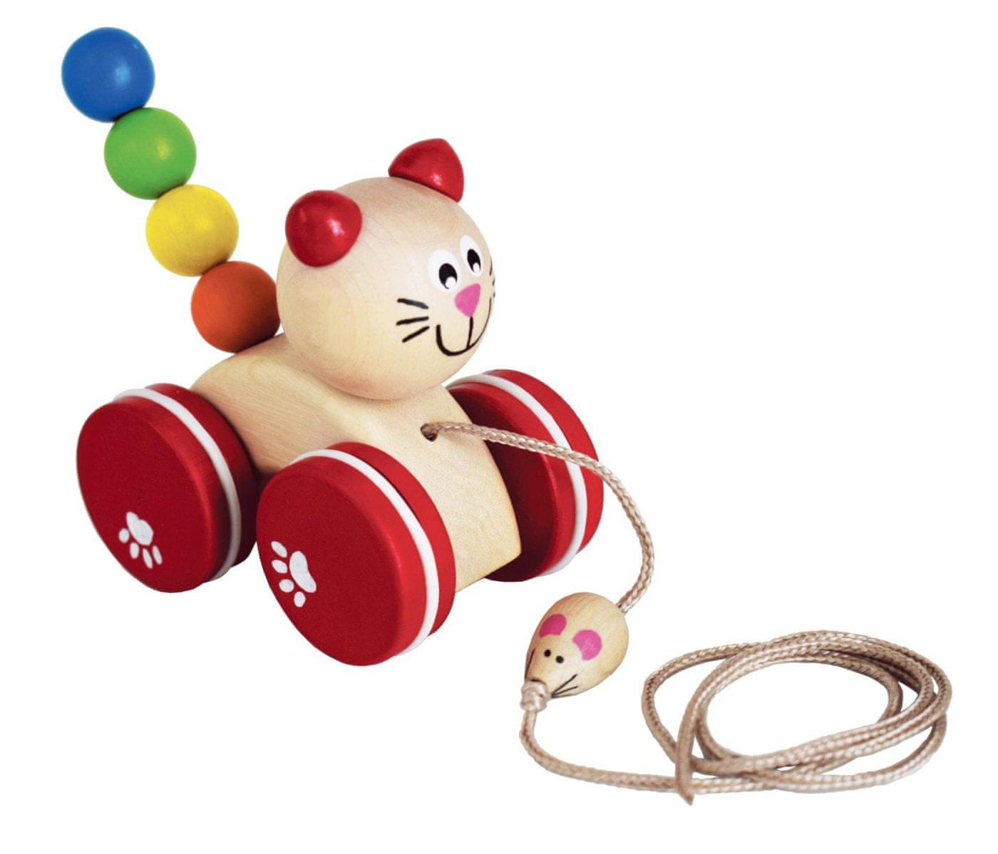 I je vaš otrok že začel delati prve korake? Vsak otrok uživa v hoji, za še večjo zabavo pa mu kupite leseno vlečno igračo, ki smo jo imeli vsi, ko smo bili majhni. Ta mačka za vlečenje ima na vrvici privezano tudi miško. Mere paketa 13 × 11 × 8 cm. Primerno za otroke od 1. leta starosti dalje.