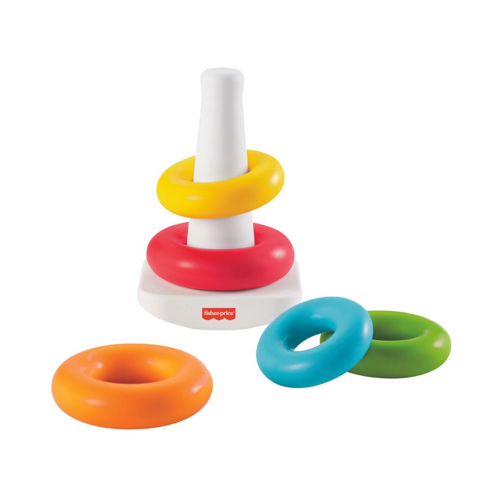 Končno… prstan, ki vlada vsem! Eko obroči na palici podjetja Fisher-Price so izdelani iz materialov rastlinskega izvora* in ponujajo klasično zabavo z zlaganjem obročev za najmlajše. Na zibajočo se podlago lahko zložijo pet pisanih obročkov, ki so kot nalašč za majhne roke. Zlaganje pomaga otrokom razvijati koordinacijo rok in oči, ko se naučijo razvrščati in zlagati od največjega do najmanjšega, pa spoznajo koncept relativne velikosti! (*Igrača je izdelana iz najmanj 90 % etanola, pridobljenega iz sladkornega trsa.)