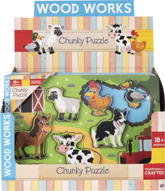 Pisana lesena sestavljanka s kmečkimi živalmi. Celoten opis
