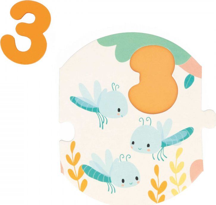 Z živalmi bo otrokom prijetneje šteti do 10. Ko je sestavljanka iz desetih delov sestavljena, je treba posamezne številke postaviti na pravo mesto. Kronološki vrstni red številk Otroci bodo lahko prešteli živali in določili pravilno število za vsak del (npr. Številke lahko po končani igri shranite v bombažno vrečko. Izjemno prikupne ilustracije, ki otroka vodijo skozi proces učenja.