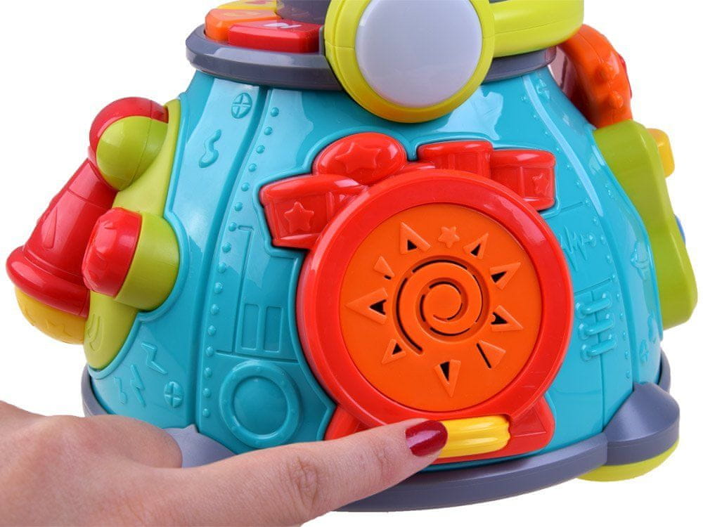 Prijetni glasbeni motivi razvijajo sluh, glasbene sposobnosti in domišljijo ter podpirajo otrokovo koncentracijo. Med prijetno in poučno igro se malček nauči prepoznavati barveós, oblikeós in razvija asociativne sposobnosti.