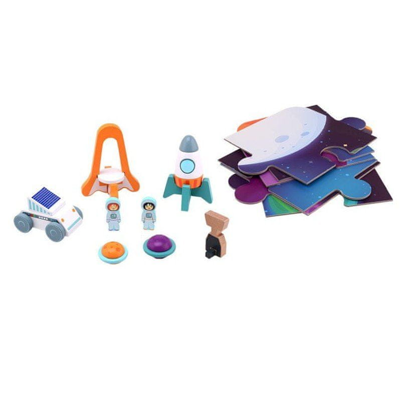 • osnova je vesoljska postaja, sestavljena iz 6 delov sestavljanke (trden karton) + leseni dodatki