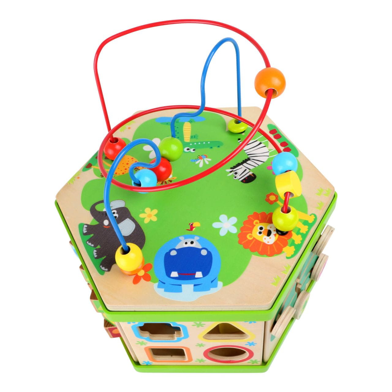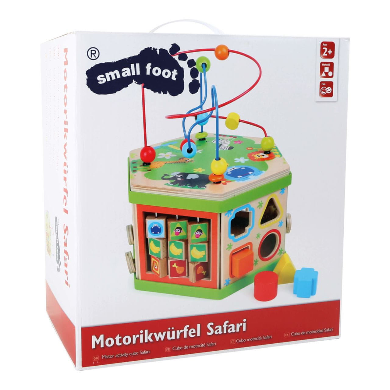 Predstavljamo veliko motorično kocko Safari Small Foot – revolucijo na področju otroške zabave in izobraževanja! S to robustno leseno kocko, okrašeno s prikupnimi živalmi safari, odprete vrata v svet odkritij, kjer je vsako igralno območje nova pustolovščina. Predstavljajte si, kako vaš otrok odkriva veselje do učenja, ko njegovi majhni prsti poskušajo obvladati drsno ravnilo ali se smejijo, ko tobogan pripelje žival na cilj. Sedem interaktivnih površin malih nog velikih motoričnih kock Safari je zasnovanih tako, da spodbujajo radovednost in željo po raziskovanju. Od krepitve finih motoričnih spretnosti do koordinacije oko-roka je ta kocka več kot le igrača – to so vrata za neskončno raziskovanje. Ne gre le za igro. Velika motorična kocka Safari Small Foot je tudi oblikovalski biser, ki se ponaša s proizvodnjo v Nemčiji, kar zagotavlja kakovost in varnost, ki si ju vaš mali raziskovalec zasluži. Notranji prostor za shranjevanje kocke služi kot skrivna komora za priključene predmete, zaradi česar so stvari pospravljene, hkrati pa spodbuja domišljijo vašega otroka. S potiskom privlačnih živalskih ilustracij pa bo tudi očarljiv dodatek k vsaki otroški sobi. Dodajte otroku dimenzijo ustvarjalnosti in učenja, ki bo vsak dan krepila njegove sposobnosti. Glavne značilnosti: vesel barvit safari dizajnvečnamenske dejavnostimotorična kocka na 7 igralnih površinahrazvijanje fine motorike, koordinacije oko-roka in koncentracijev notranjosti je prostor za shranjevanje priključnih elementovprimeren od 12 mesecev