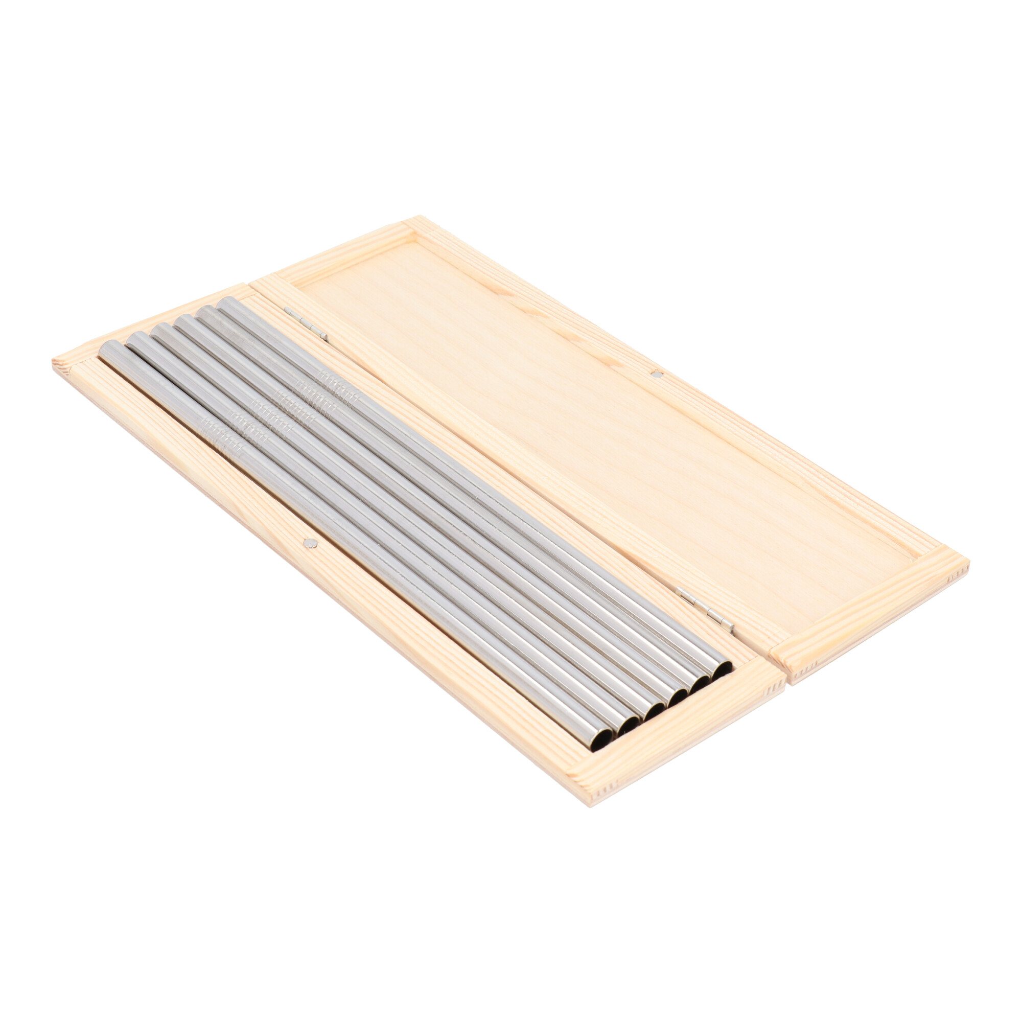 shumee Kovinske slamice 8mm, set v lesenem etuiju, srebrne barve