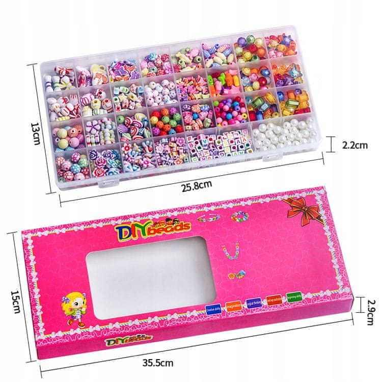 Ogromen komplet nakita je pravi rudnik navdiha. Vsebuje kar 30 predalov z različnimi perlicami . Vaš otrok ima široko izbiro , ki mu omogoča ustvarjanje nakita v različnih motivih in slogih. Veliko število elementov v kompletu bo vašega otroka spodbudilo k ustvarjanju izvirnega nakita ne le zase, ampak tudi za svoje najdražje . To je čudovit način, da delijo svojo ustvarjalnost in razveselijo druge . Ustvarjanje lastnega nakita je odlična in ustvarjalna igra , ki spodbuja domišljijo ter razvija ročne spretnosti in ustvarjalnost. IZBOLJŠA ROČNE SPRETNOSTI IN KOORDINACIJO
