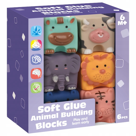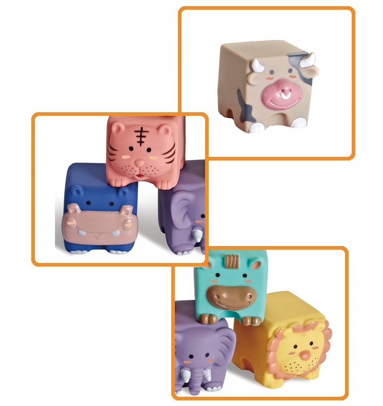 ?? 6 barvitih kock v oblikah živali spodbujajo raziskovanje in razvijajo otrokove čute. Ta ustvarjalni komplet spodbuja razvoj otrokove vidne, slušne in motorične koordinacije.
