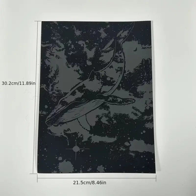 Komplet 4. Odkrijte čarobnost oceanskih globin s tem kompletom fluorescenčnih kartic za praskanje, ki prikazujejo veličastna morska bitja. Preprosto obrišite zgornji sloj, da razkrijete celotno barvo in se čudite, ko se slika sveti v temi!