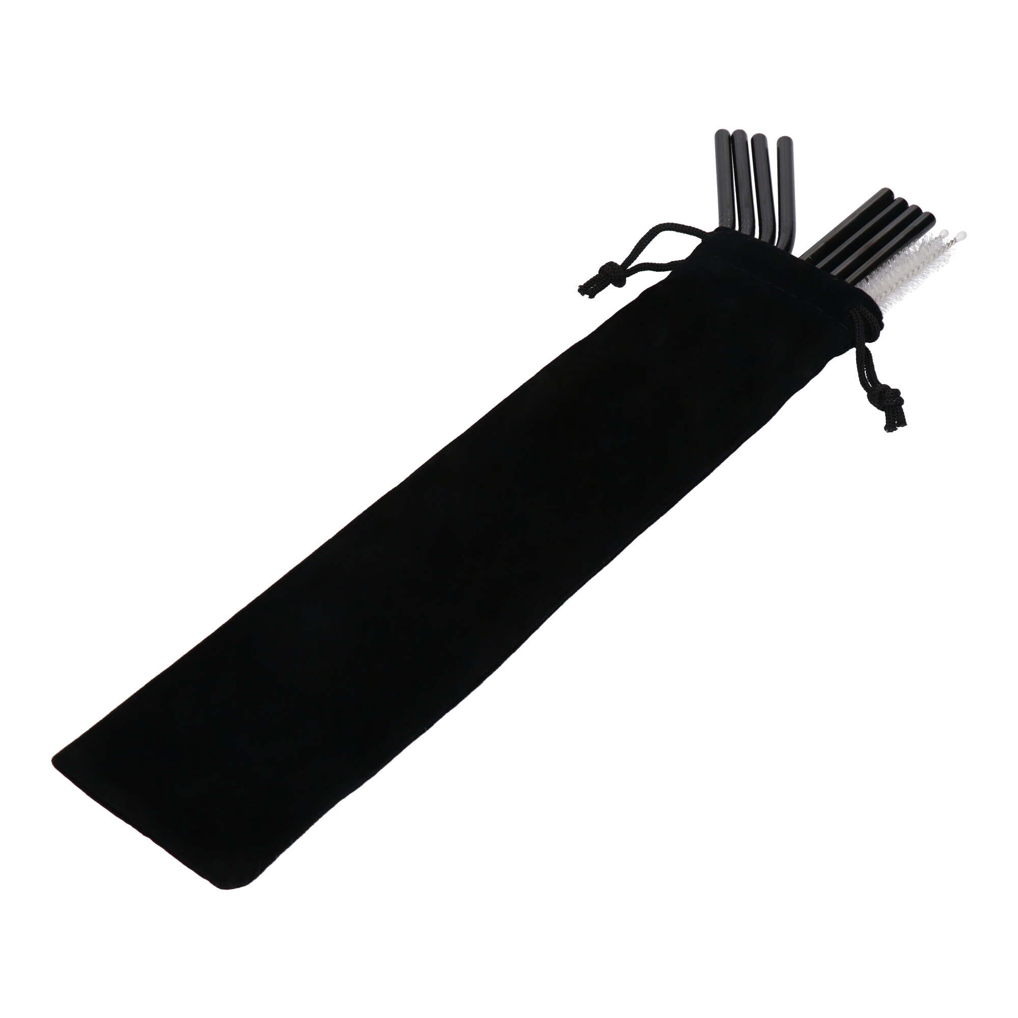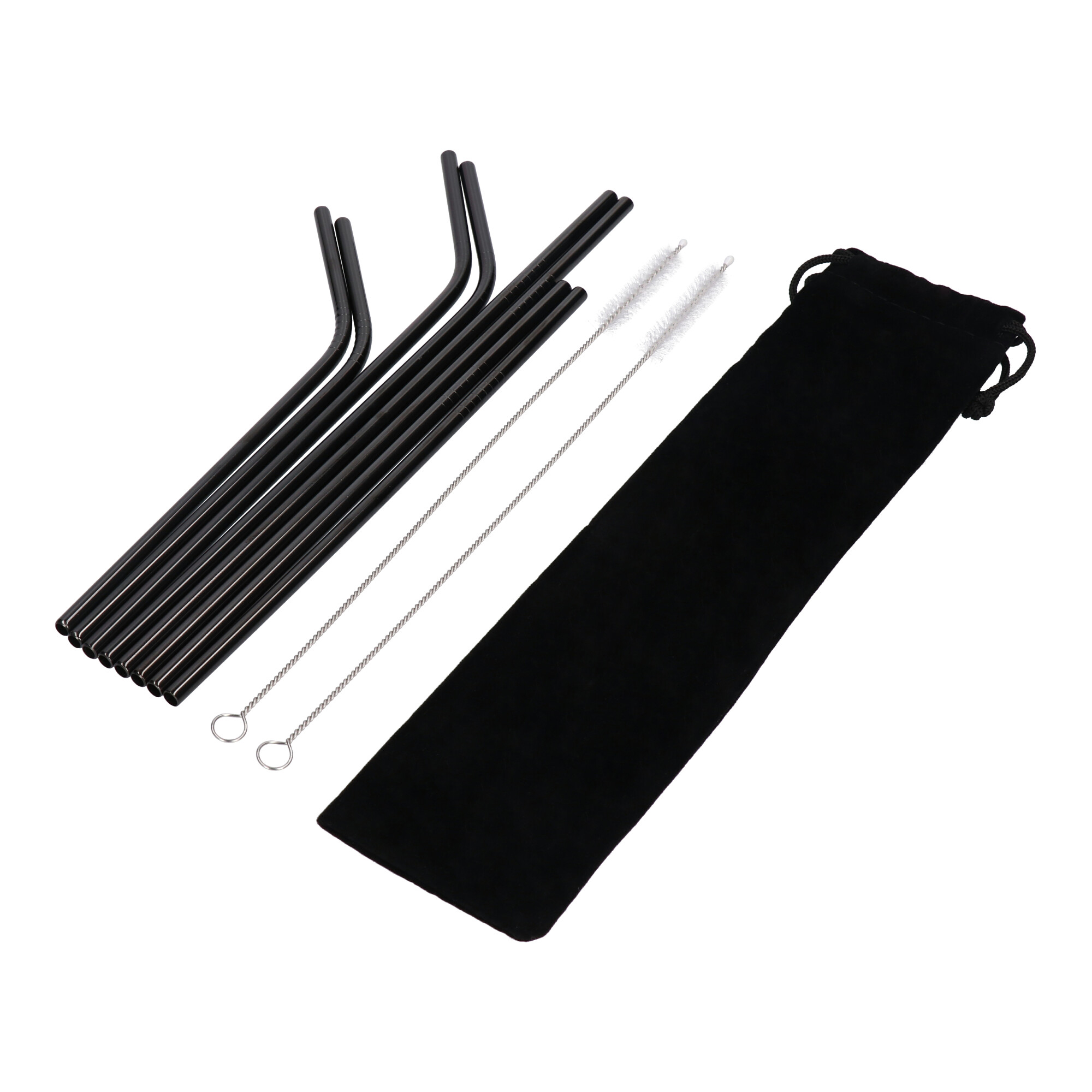 Set 8 črnih jeklenih slamic, 2 čistil in vrečke