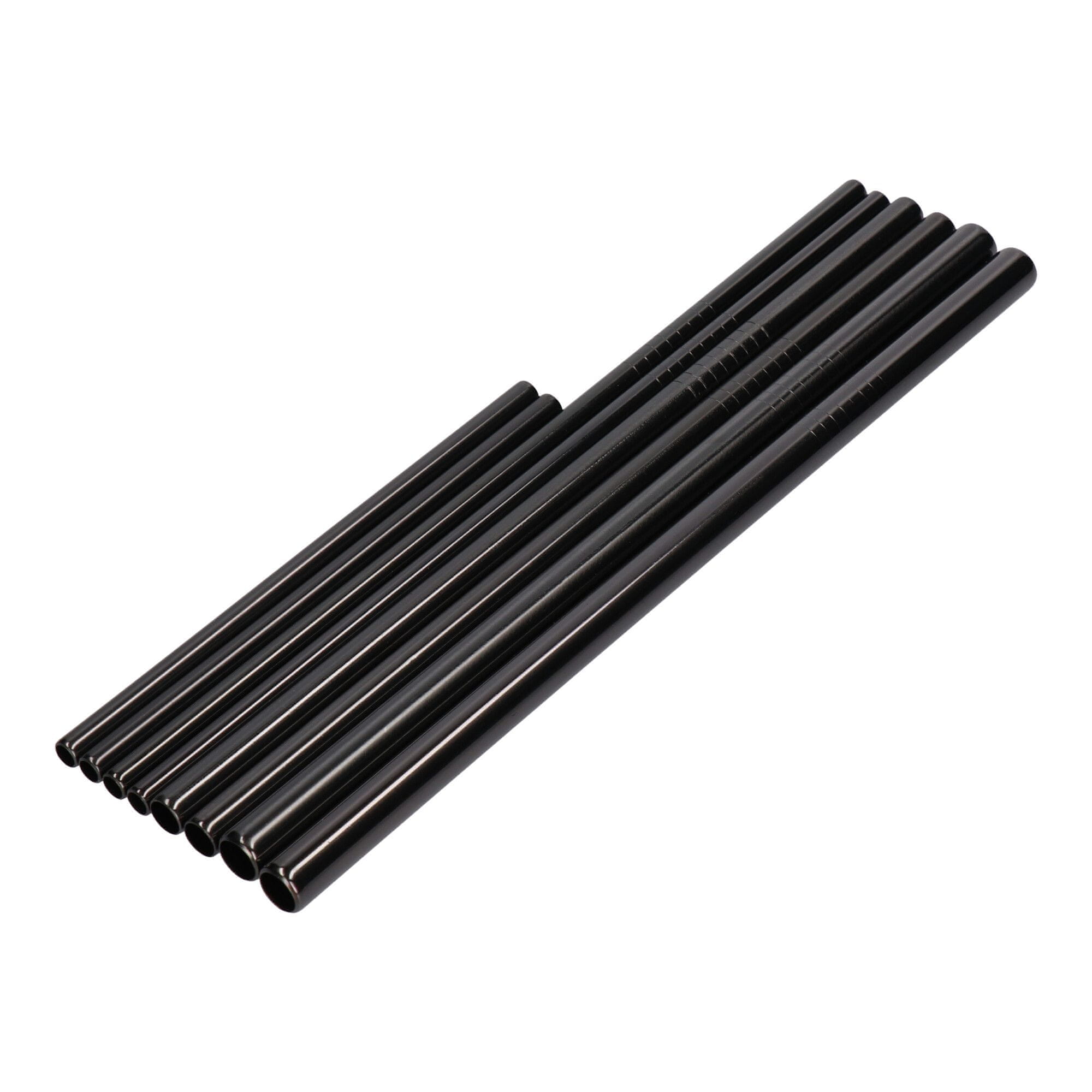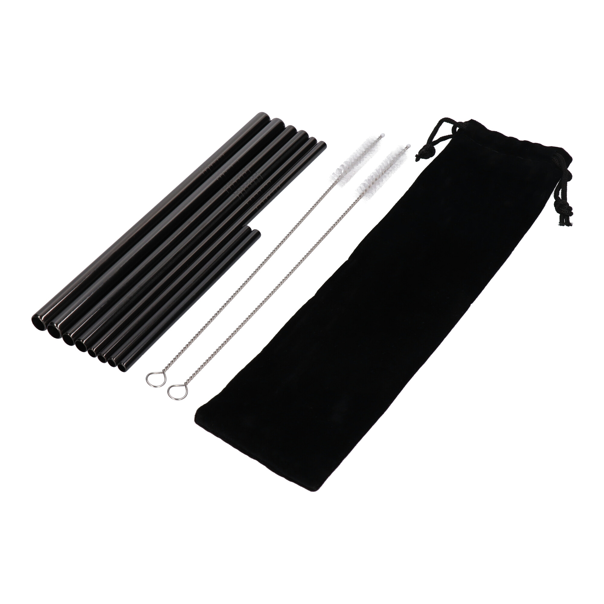 Set 8 črnih jeklenih slamic, 2 čistila in vrečke