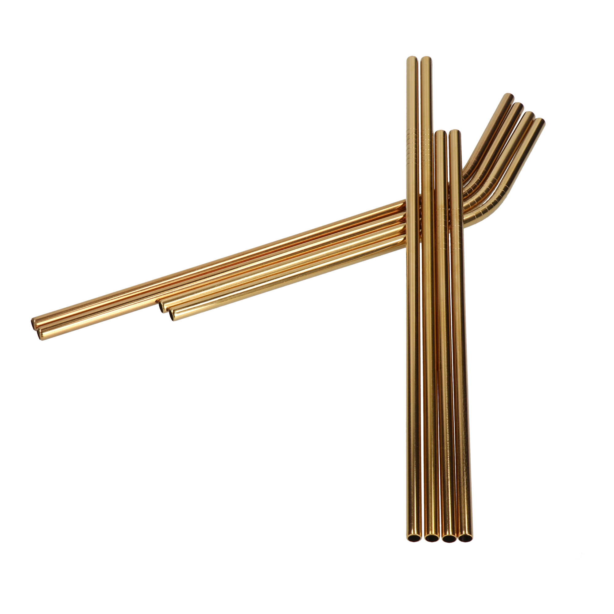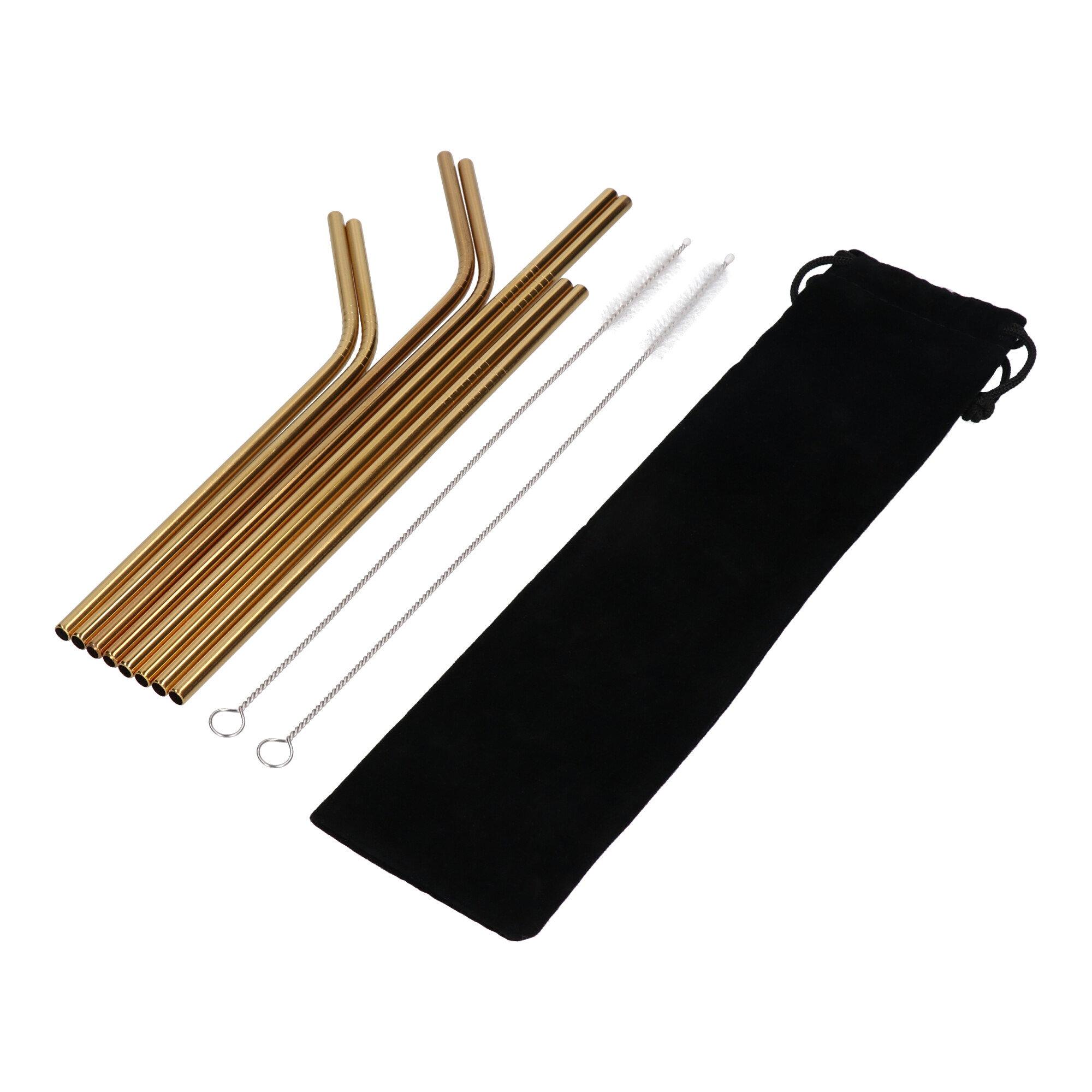 Set 8 zlatih jeklenih slamic, 2 čistil in vrečke