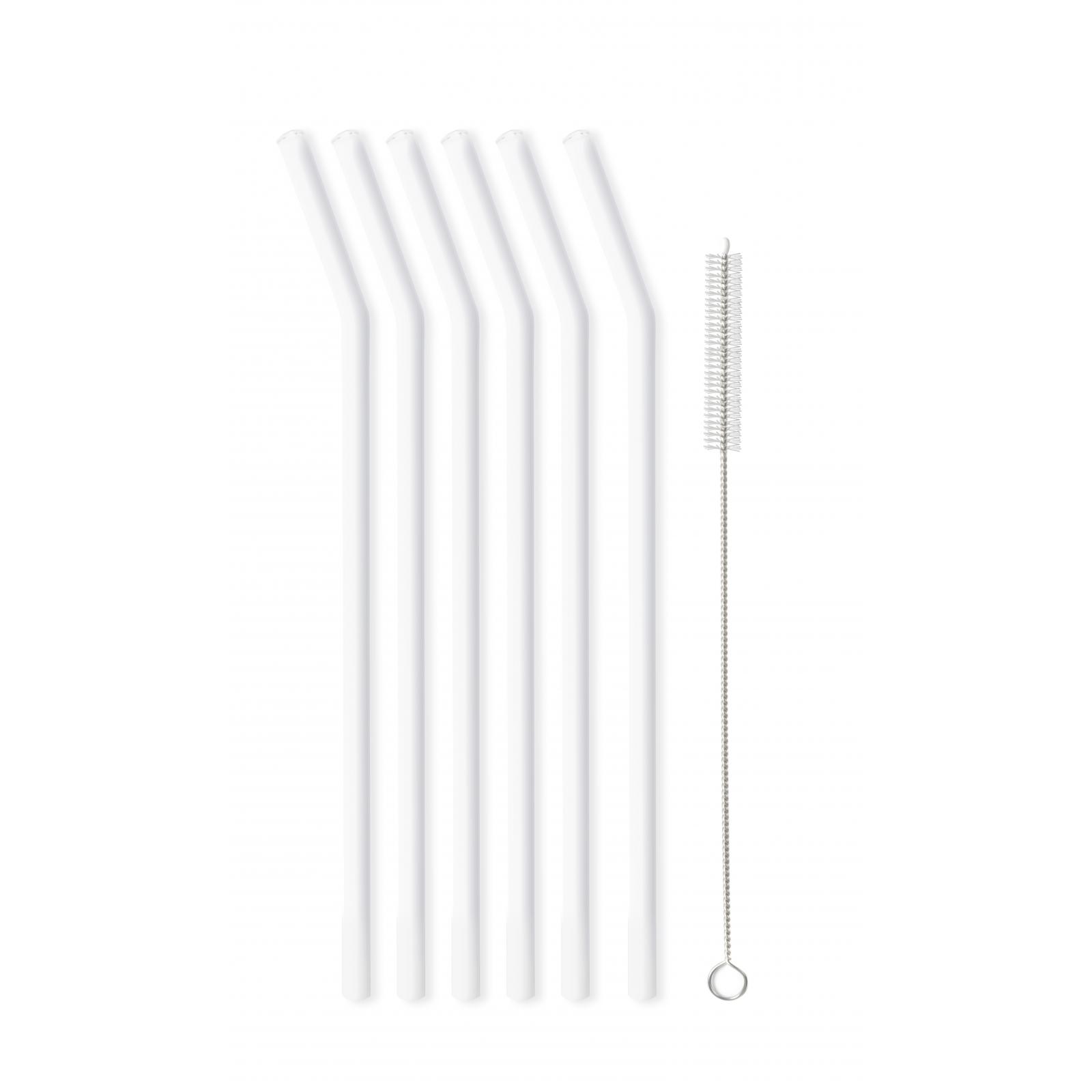 Komplet vsebuje 6 ukrivljenih belih slamic in ščetka za enostavno čiščenje.