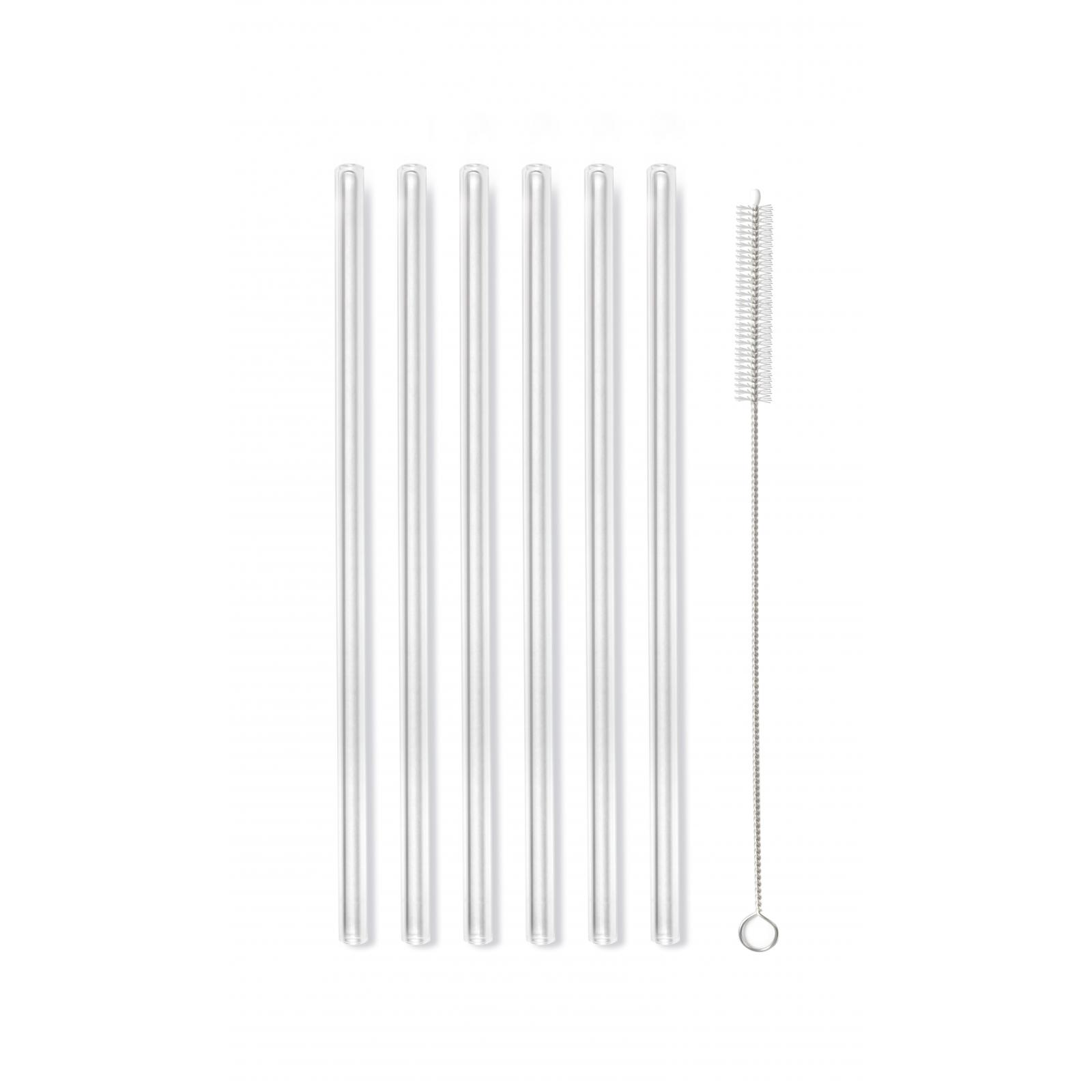 Komplet vsebuje 6 ravnih prozornih slamic in krtača za enostavno čiščenje.