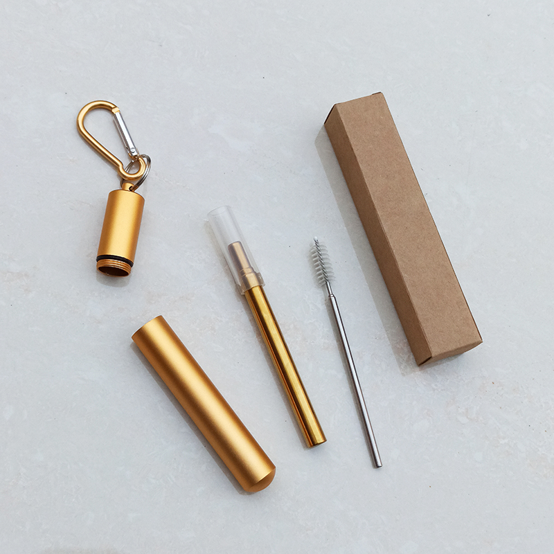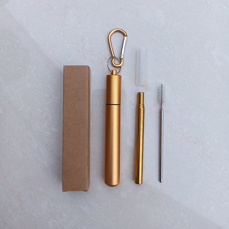Teleskopska slamica v kovinskem kovčku s čistilom in karabinom – zlata
