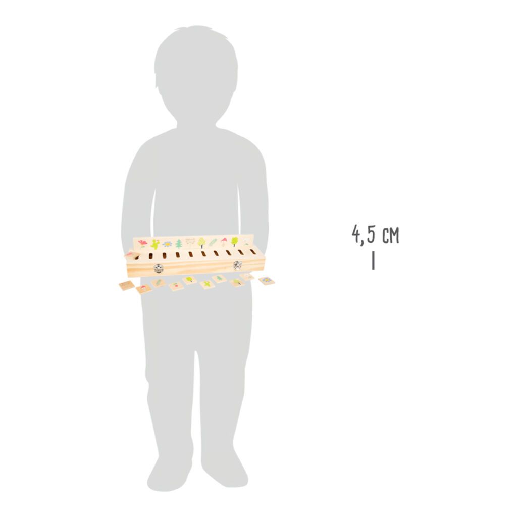 Razvrstite rastline, sadje in živali po vrstah, naj otrok prepozna barve in oblike. V škatli za igro lahko vse komponente, tako plošče z vzorci kot kvadratne žetone, priročno shranite in pospravite za potovanje. Izdelano iz 100 % lesa s certifikatom FSC. Glavne značilnosti: 3 plošče s predlogami, 30 žetonovPraktično pakiranjeNarejeno iz 100 % lesa FSC Oznaka in certifikat FSC (Forest Stewardship Council) zagotavljata, da les, iz katerega je izdelan izdelek, ni bil nezakonito posekan in prihaja iz gozdov, s katerimi se gospodari na trajnosten ali naravi prijazen način, pri čemer se upoštevajo stroge okoljske in socialne zahteve. Oznaka FSC na izdelku pomeni, da z nakupom prispevate k varstvu gozdov in podpirate trajnostno, odgovorno ali naravi prijazno gospodarjenje, zaradi katerega so naši gozdovi stabilnejši, bolj zdravi, z naravno sestavo vrst in bolje kljubujejo negativnim učinkom podnebnih sprememb.