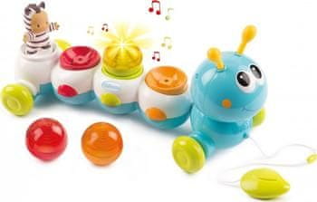 Gosenica, ki vleče vrvico, s svetlobnimi in zvočnimi učinki. Celoten opis