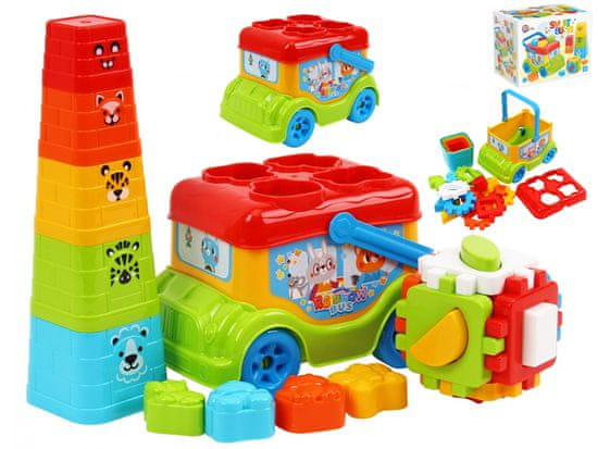 Avtobus/puzzle 20 cm prosti tek + piramidne zložljive skodelice 5 kosov in vložek za kocke