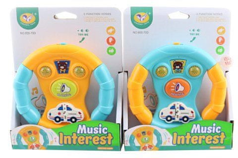 Volanta za najmlajše otroke. Krmiljenje proizvaja različne zvoke, kot so trobljenje, utripanje ali igranje melodije. Material plastika. Pakirano v vrečki. Dimenzije paketa približno 17×20×5 cm. Premer volana 14 cm. Starost 12m+