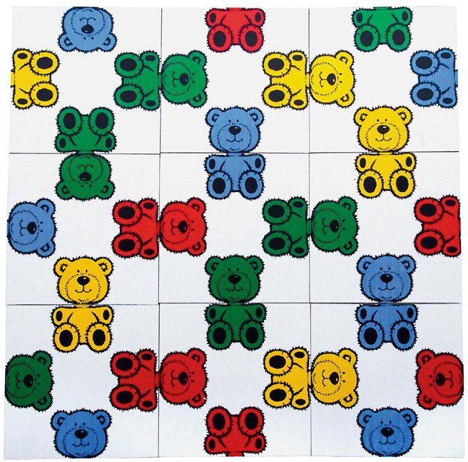 Just Jigsaws 782 Barvni medvedki – lesena sestavljanka 9 kosov. Ta kvadratna sestavljanka iz 9 delov je težja, kot se zdi na prvi pogled. Cilj je združiti slike in tako ustvariti samo enobarvne medvedke. Barvita izvedba presenetljivo preproste, a zahtevne sestavljanke, ki razvija logično mišljenje, trenira potrpežljivost in fino motoriko ter spodbuja poznavanje barv.