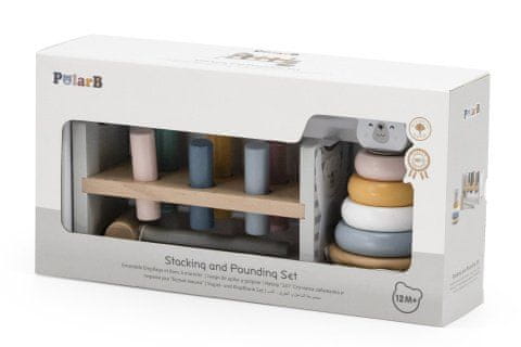 Leseni set za najmlajše vsebuje kladivo in zložljivo piramido z motivom polarnega medveda. Celoten opis