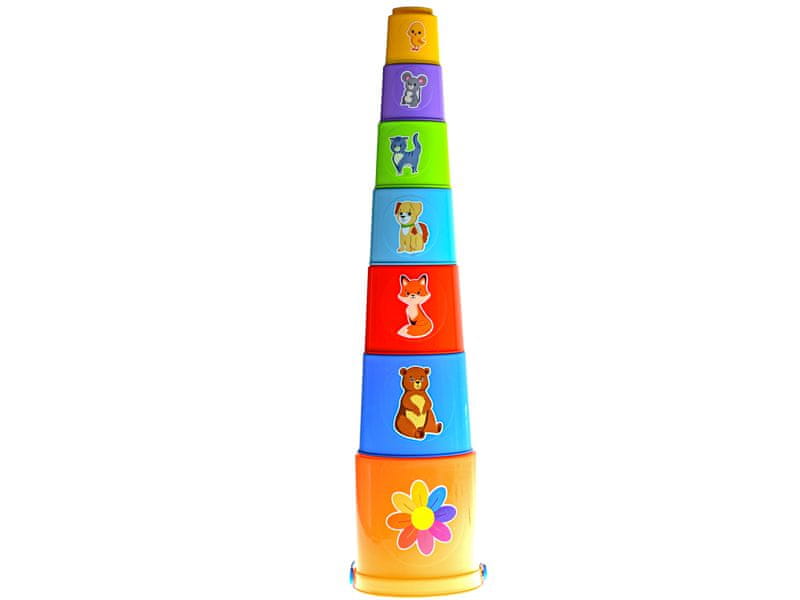 Set barvnih skodelic, ki jih otroci lahko zlagajo kot piramido. Skodelice trenirajo koordinacijo gibov in razvijajo logično sklepanje. Primerno za otroke od 12. meseca dalje.
