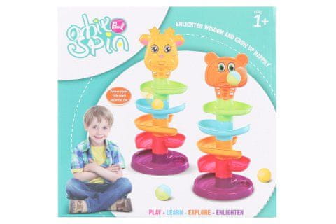 Plastična steza z žogo za najmlajše. Vključuje 3 žogice in 2 ropotajoči žogici. Dimenzije steze so približno 40 × 17,5 cm. Dimenzije paketa približno 27,5 × 27 × 8 cm. Starost 12m+