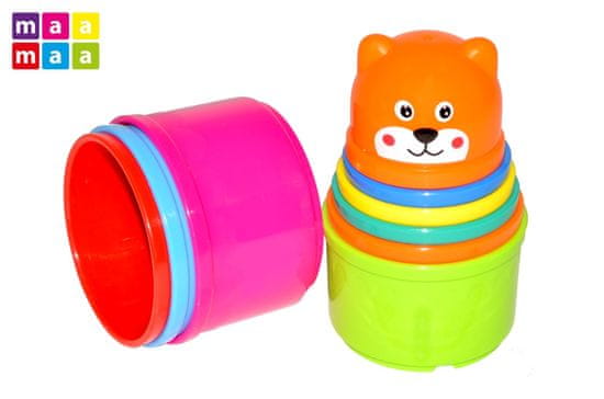 Izvrsten pripomoček za prepoznavanje in učenje osnovnih barv piramida je sestavljena iz kompleta različno velikih in različno obarvanih skodelic otroci se naučijo prepoznavati različne velikosti in jih pravilno razporediti v ali drug nad drugim