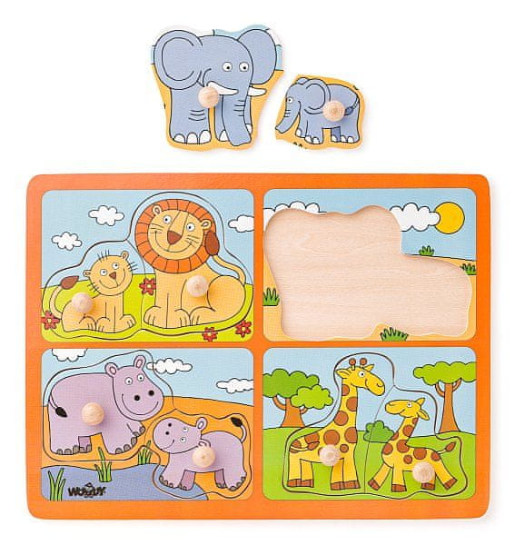 Lesena sestavljanka z divjimi živalmi za otroke združuje zabavo in učenje.