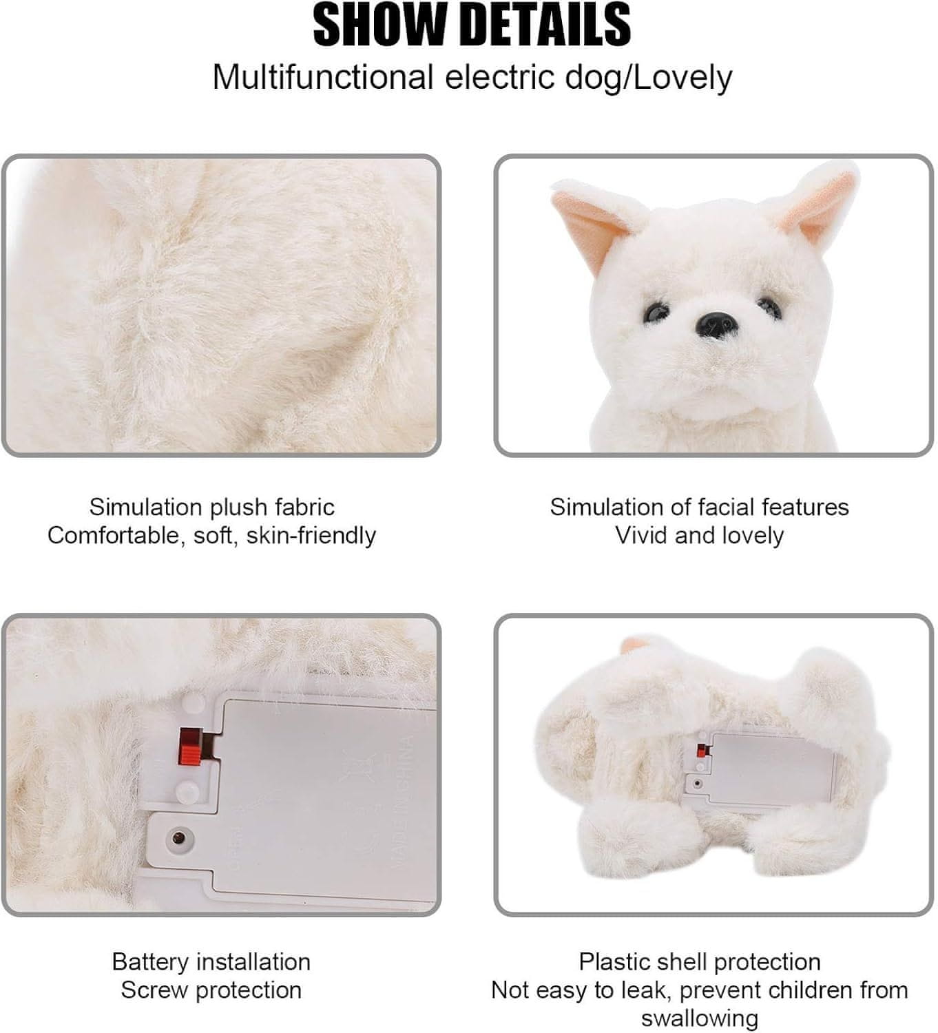 Ta interaktivna elektronska igrača plišasti pes je popolna izbira za otroke. Ko vklopite stikalo, pes začne lajati, hodi naprej in maha z repom. Poleg tega se odzove na božanje po glavi, kar ustvarja zabavno in enostavno uporabniško izkušnjo za otroke. Zasnovan je tako, da je varen in primeren tudi za najmlajše.