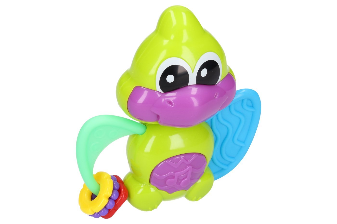 Maamaa Dino z učinki 12cm. Svetlobni in zvočni učinki s pritiskom na trebuh. Vključene baterije 3×AG13. Celoten opis