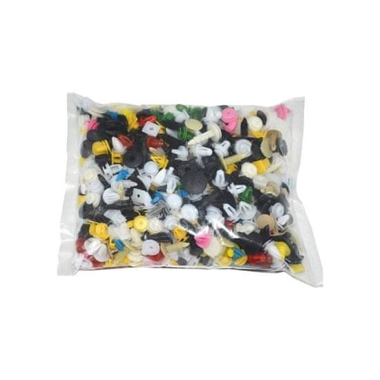 Univerzalni set 200 kosov različnih plastičnih sponk za avto za pritrditev oblazinjenja. Široko se uporablja za avtomobilske blatnike, odbijače, vrata ali druge avtomobilske površine. Set vključuje standardne velikosti, ki se uporabljajo v večini modelov osebnih avtomobilov in dostavnih vozil.