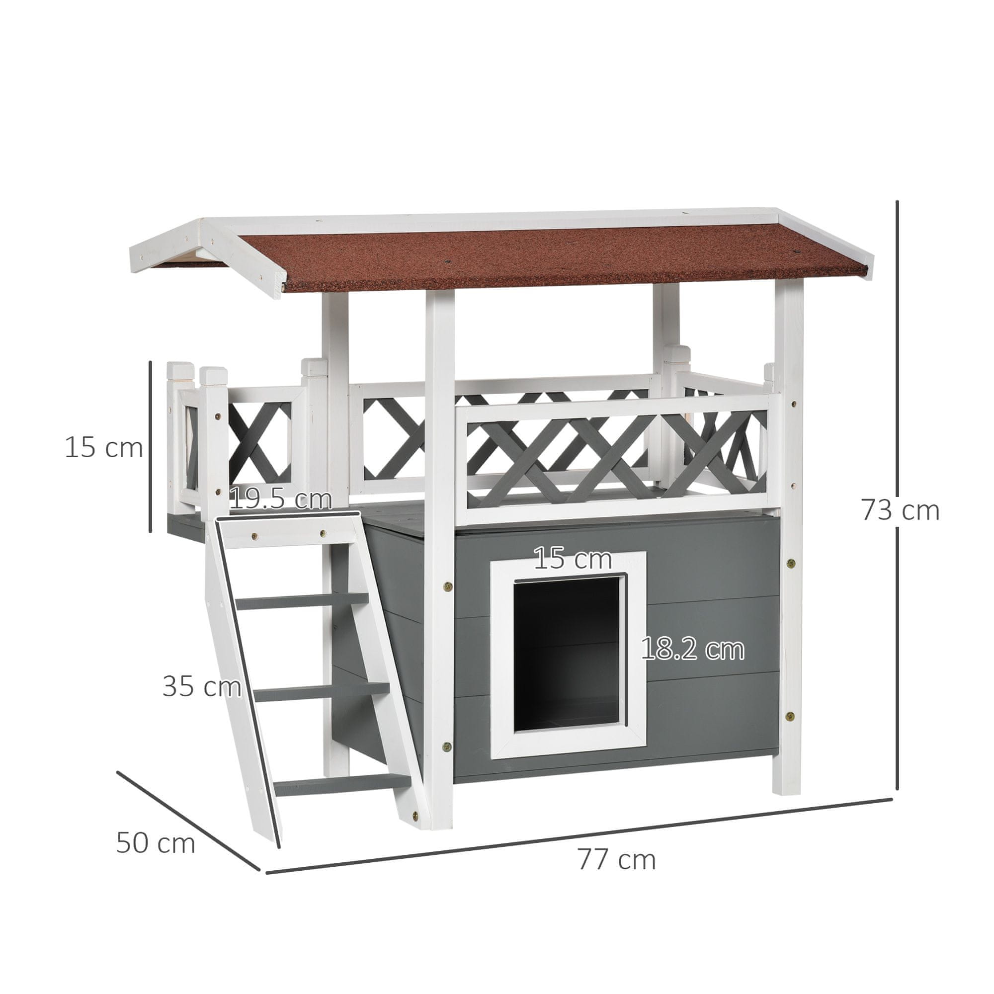 PAWHUT Lesena zunanja hišica za mačke in male živali z boksom, teraso in lestvijo, 77x50x73cm, večbarvna