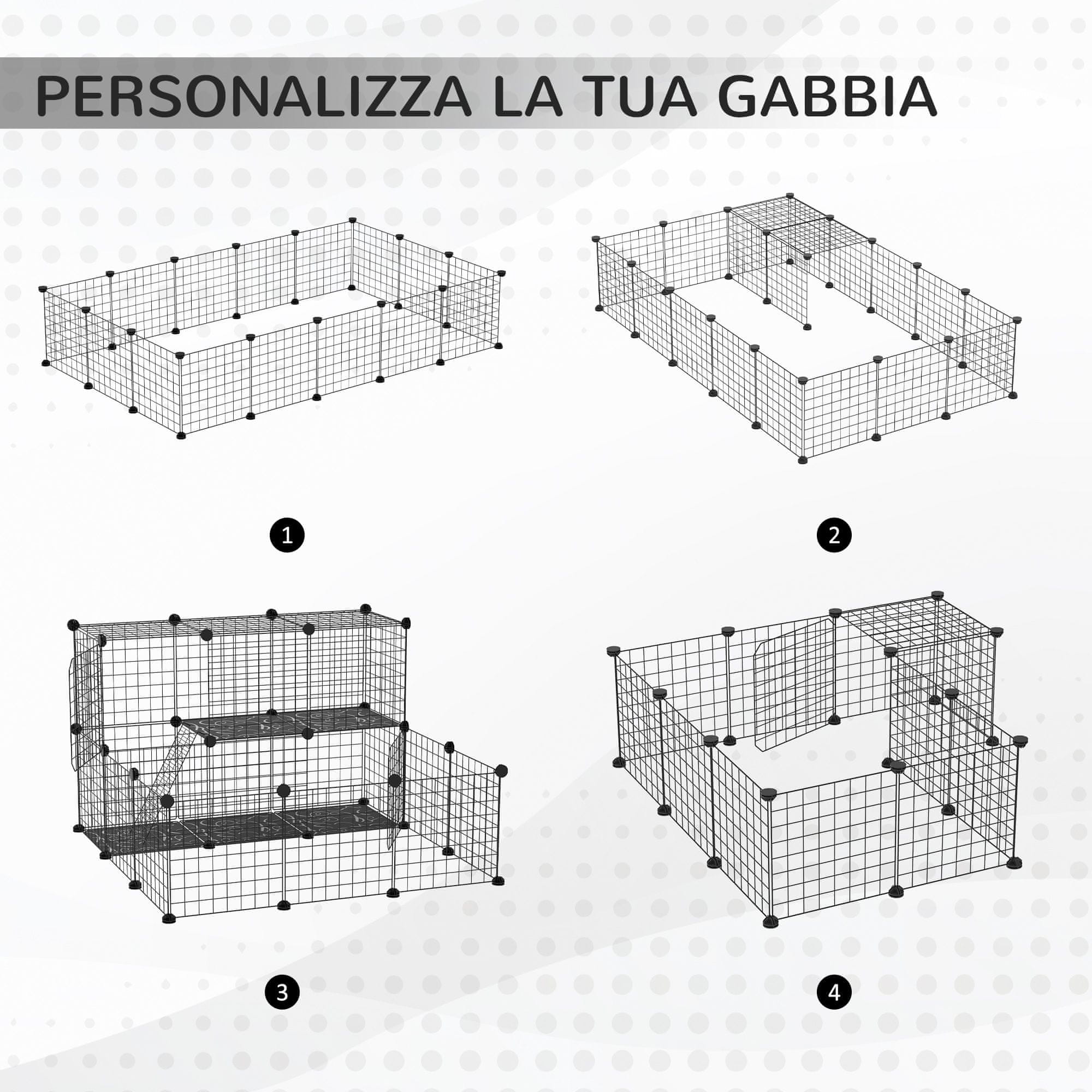 PAWHUT PawHut Modularna ograda za kunce, morske prašičke in glodavce, zaboj za živali z dodatki, jeklena montaža, 105x105x70cm, črna