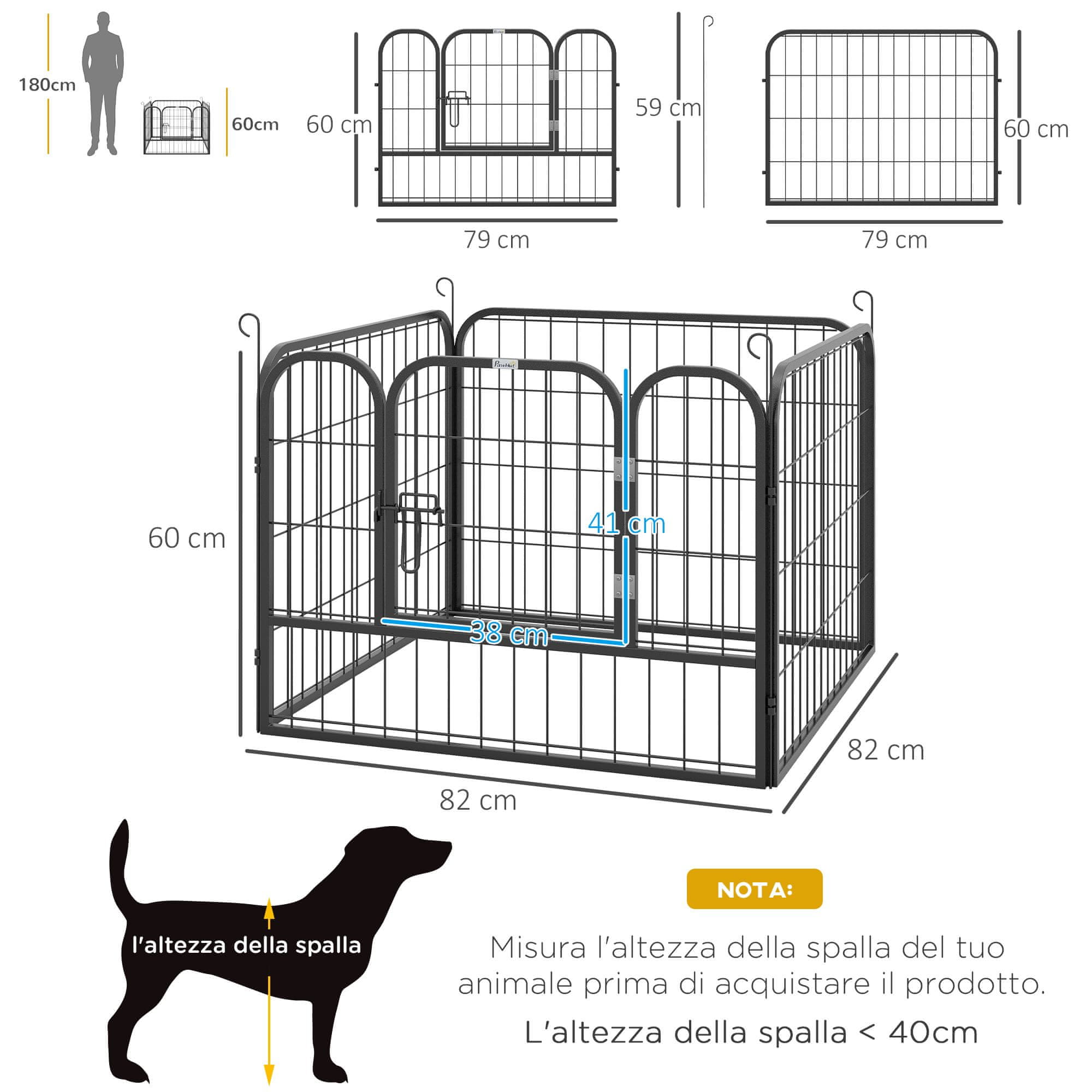 PAWHUT PawHut zložljiva ograja za pse za notranjo in zunanjo uporabo, vrata z zaklepom in pritrdilnimi zatiči, 82x82x60 cm, temno siva