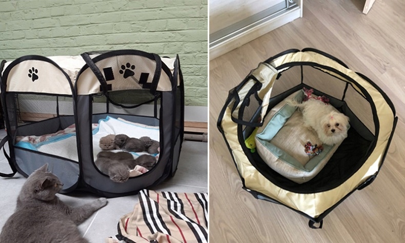 • v notranjost lahko postavite posteljico, podlogo, odejo, sklede z vodo, hrano, igrače in še veliko več