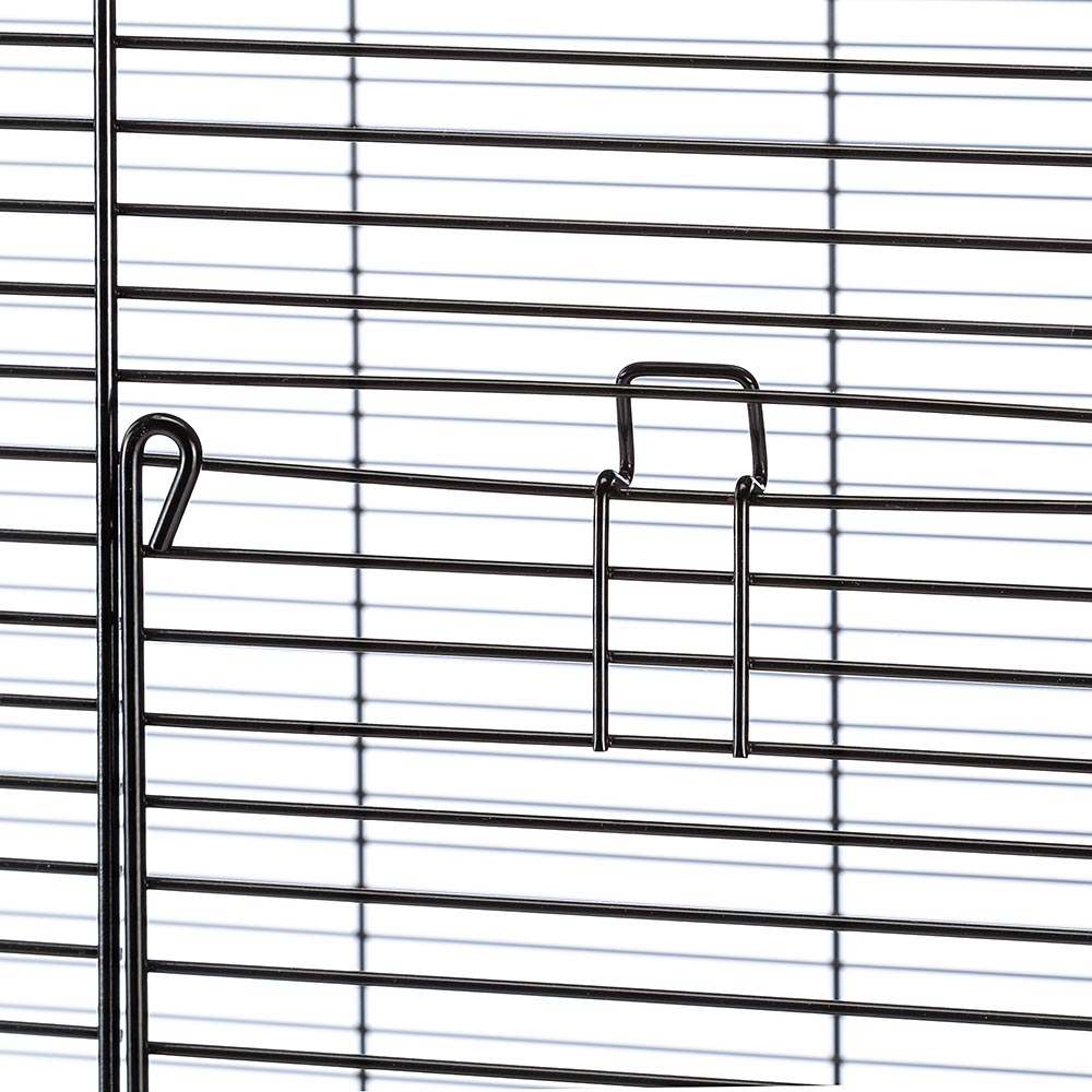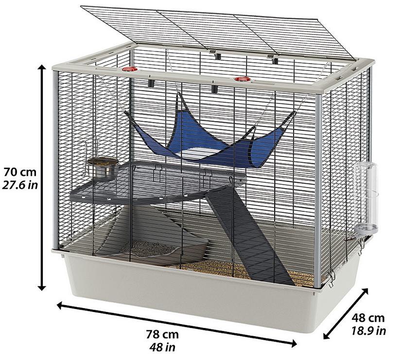 FERPLAST Furet Plus je udobna in varna kletka, zasnovana za dihurje. Zgornji del kletke je izdelan iz kovinskih žic, pobarvanih v elegantni temni barvi. Opremljena je s priročno odprtino na strehi. Odstranjevanje hišnega ljubljenčka ali dodajanje hrane bo enostavno, saj se streha popolnoma odpre. Ta rešitev ni priročna le za vas, ampak tudi za vašega ljubljenčka. Za še lažje čiščenje je celoten zgornji kovinski del kletke odstranljiv, kar vam omogoča, da kletko znižate na raven mačjega stranišča.