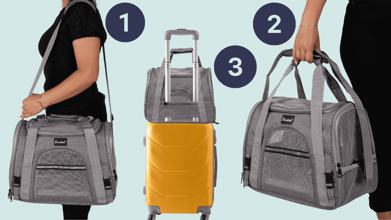 • Več vhodov – Odpiranje stranic in vrha torbe olajšata dostop do hišnega ljubljenčka, kar je priročno med potovanjem in vsakodnevno uporabo ( grafika 1–3 )