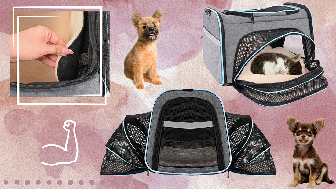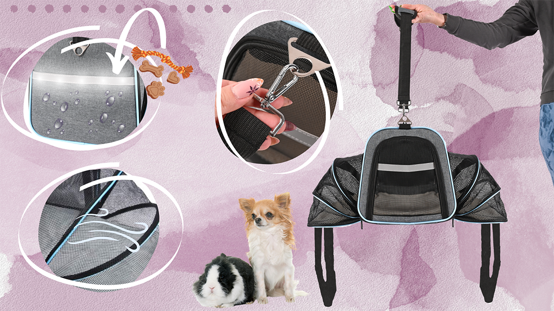 • povodec, pritrjen na gumico , zaradi česar bo vaš ljubljenček varno sedel v notranjosti in ne bo pobegnil ➡️ Trdna konstrukcija: