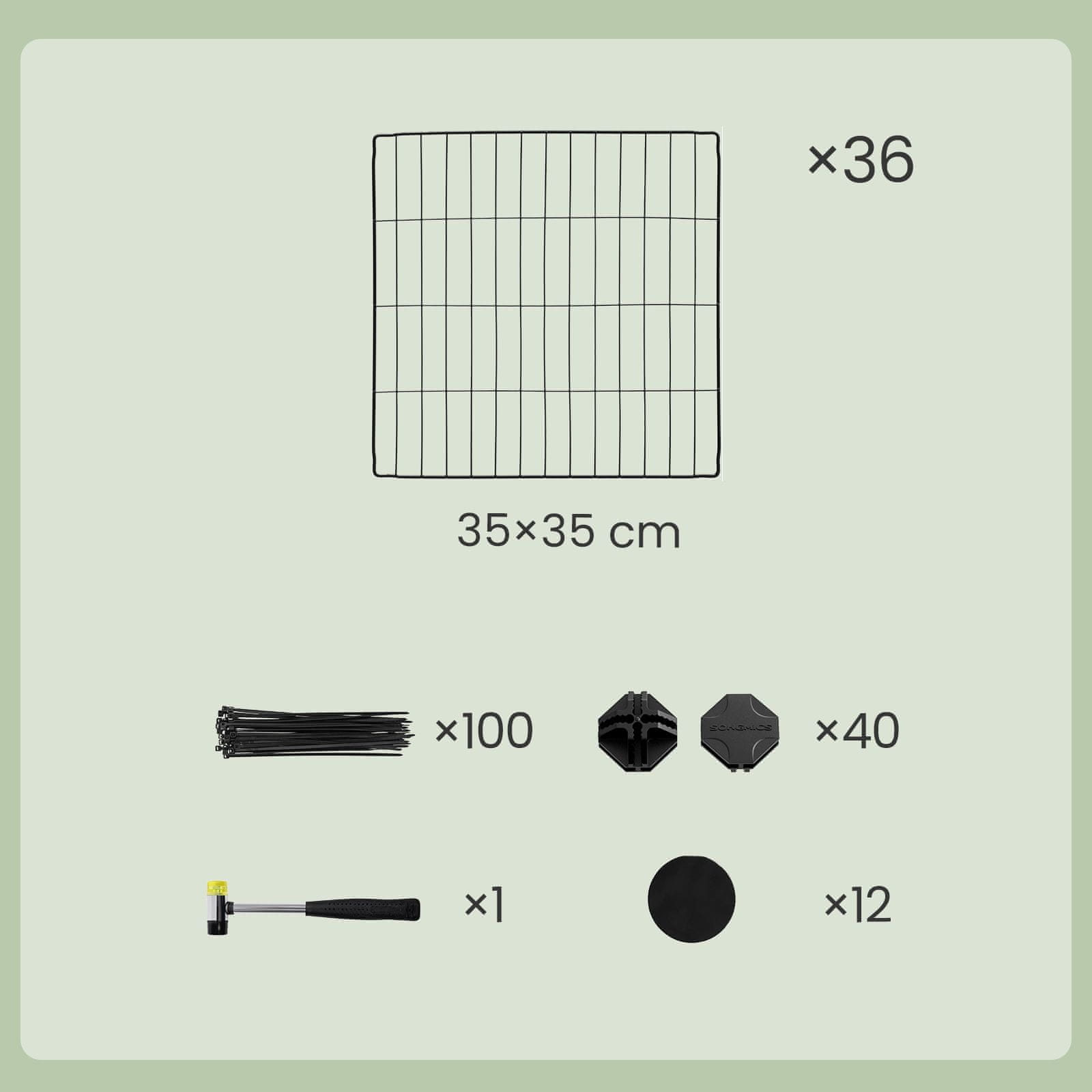 Ta vsestranski ograja za živali je zasnovana za zagotavljanje varnega in prilagodljivega ograjenega prostora za male hišne ljubljenčke kot so morski prašički. Primerna za notranjo uporabo ponuja prilagodljivost pri sestavljanju kar vam omogoča prilagoditev strukture vašemu prostoru in potrebam vaših ljubljenčkov. Trdna konstrukcija zagotavlja vzdržljivost medtem ko vključeni dodatki omogočajo enostavno in priročno postavitev.