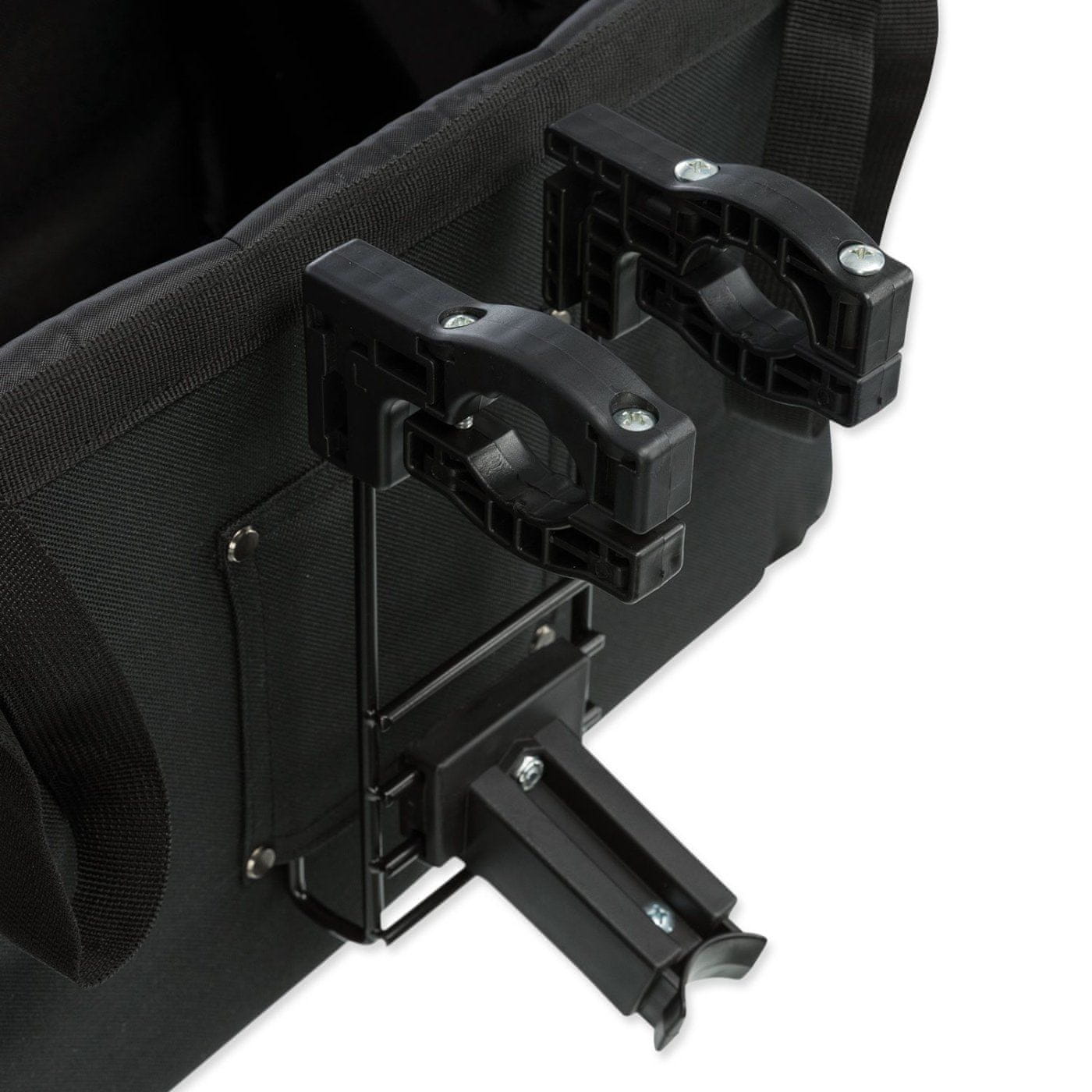 z žičnatim držalom za krmilo oblazinjeni robovi z zunanjimi žepi snemljiv naramni pas z integriranim kratkim povodcem odsevni elementi z odstranljivim oblazinjenim dnomDržalo za krmilo ima dva ročaja (levi in desni (l+r)za krmilo O od 22 mm do 29 mmrazdalja med ročajema je 6 cmu krmilo brez stebla ( Celoten opis