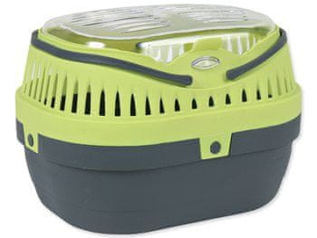 Plastični zaboj z zgornjo odprtino in prezračevalnimi odprtinami za miši, hrčke in druge majhne živali. Celoten opis