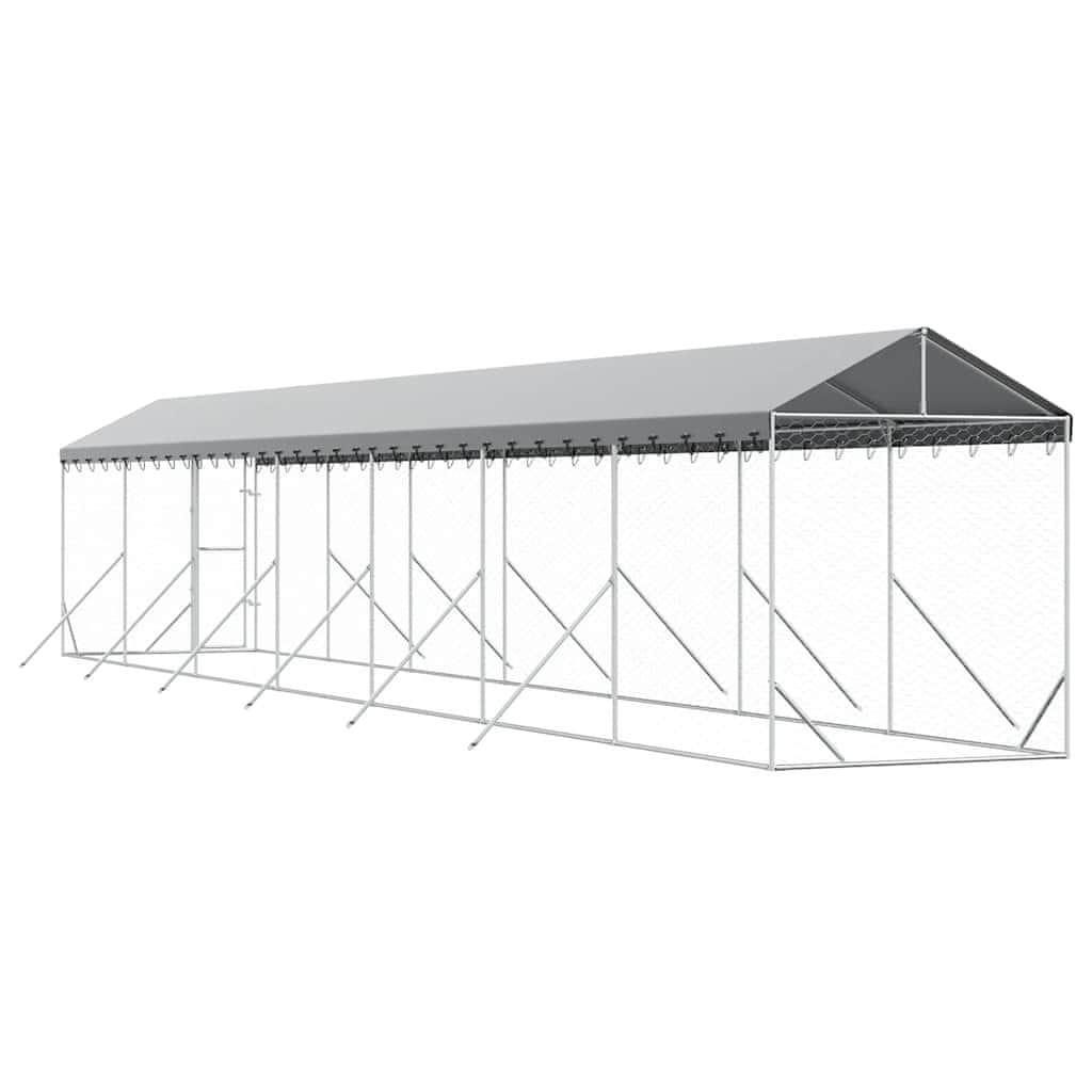 Vidaxl Zunanja pasja ograda s streho srebrna 2x14x2,5m pocinkano jeklo